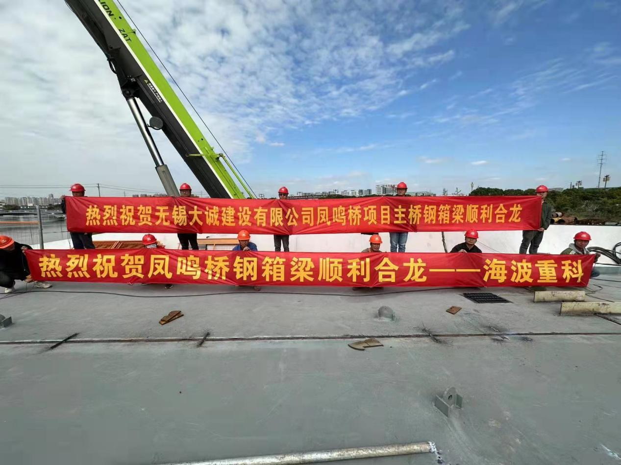 (海波重科新聞報道)10月29日,無錫鳳鳴橋項目主橋鋼箱梁順利合龍,工程取得階段性勝利。爲全面進入主橋施工建造奠定了堅實的基礎。