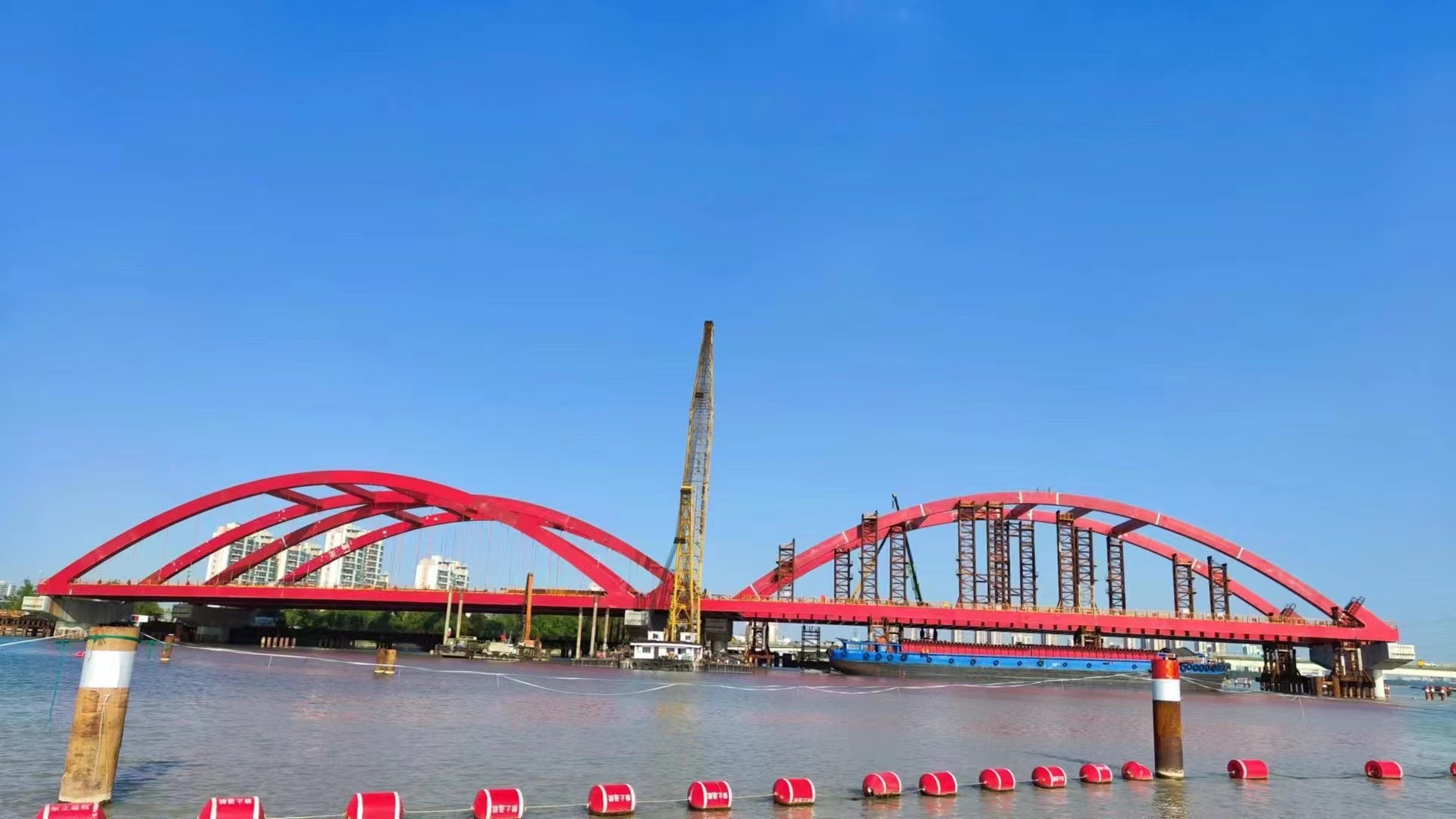 2022年11月16日,海波重科參建項目,大橋主體部分全部順利吊裝完成,預示着離該項目完工已接近尾聲。